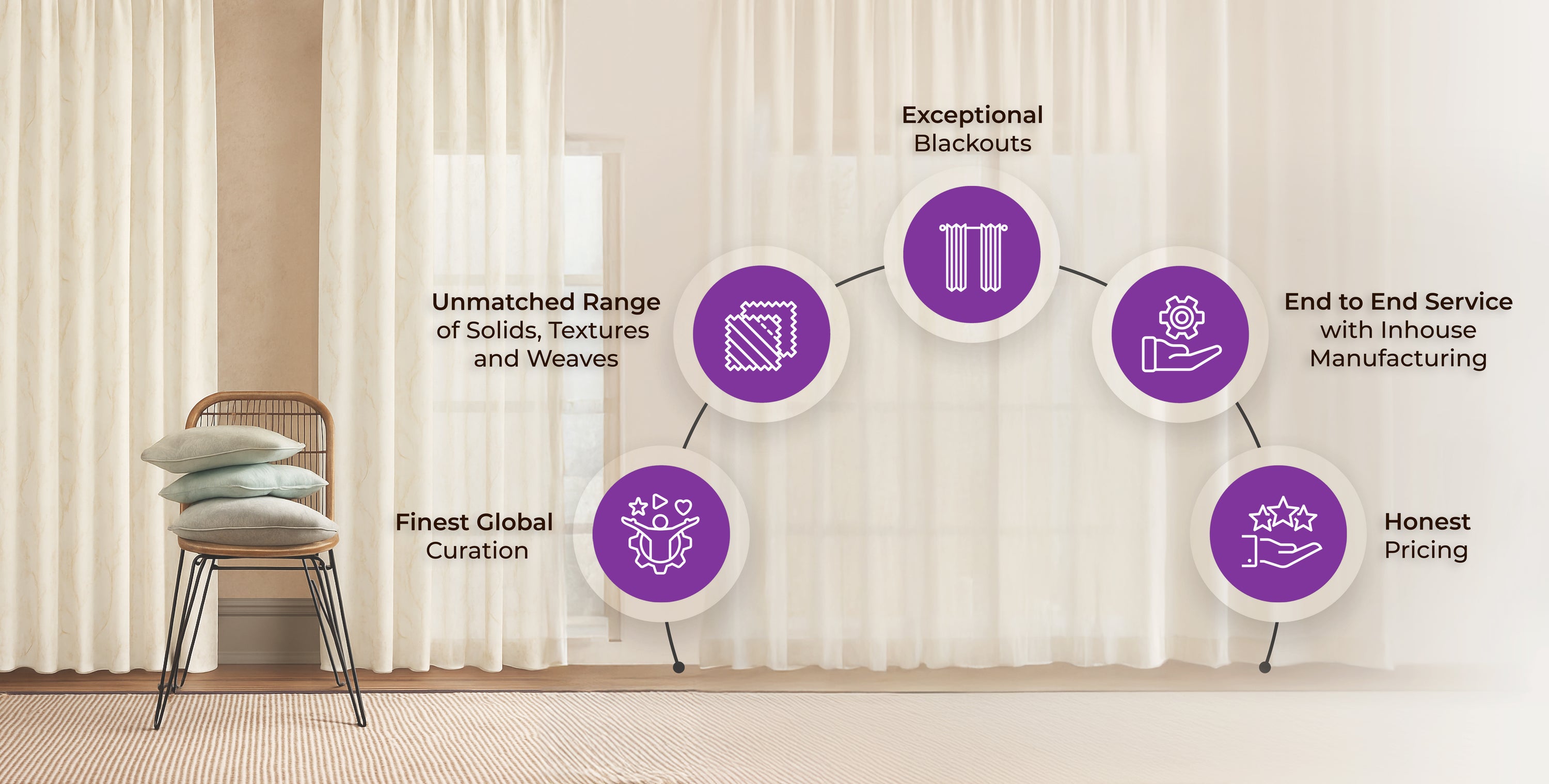 D'Moksha transformed the curtain-buying experience with their visualisation tool and full length curtains home trials. The range, customization, and attention to detail were exceptional. When asked how likely I am to recommend D'Moksha to friends and family, I said 12 on 10 and I meant it!